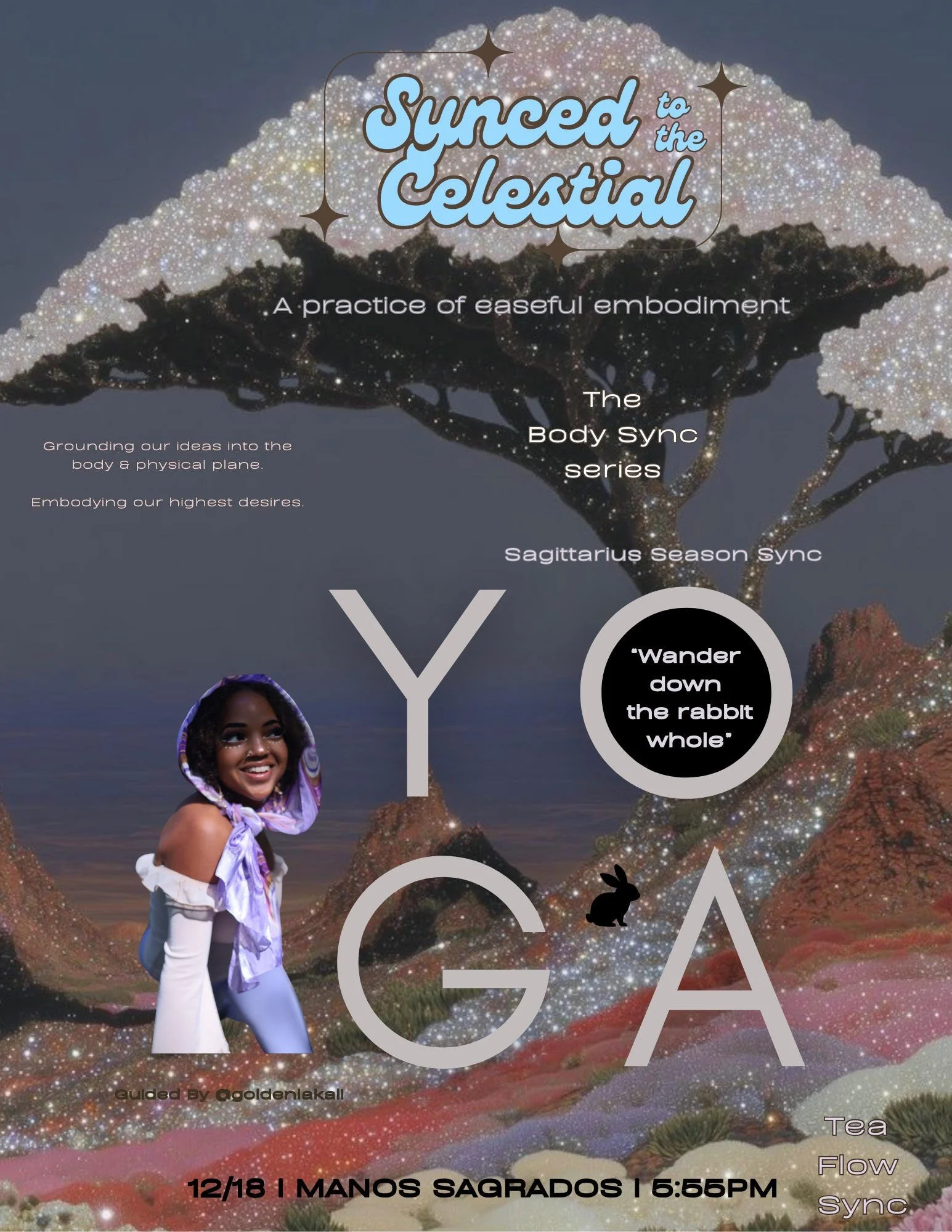 The Body Sync Series is a series of workshops guided by @GoldenLaKali where we connect with the ancient technology of the body, syncing with the natural rhythms of our bodies, the planet, and the Universe through movement and holistic medicine.